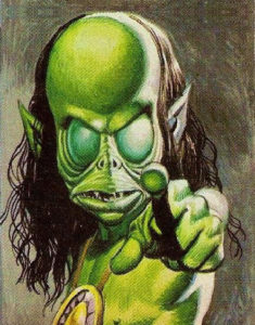 . . . in a blanket of green blindness! Help! Where are you? I can’t see a thing! High above, Janno was shocked to hear the controller’s panic-stricken cries over his communicator. It’s all gone green! I’m blind! Janno, for pity’s sake! . . . What’s happening down there? Receiving no reply, Janno brought his craft down in a screaming dive. Nearing the ground, he saw the ominous green cloud that shrouded the city. It’s . . . unbelievable! Even as he looked, the green murk cleared away and the capital of the Trigan Empire lay below him in all its accustomed glory. It’s . . . gone! The pandemonium in the city was indescribable, with crashed vehicles littering the streets, and frightened and bewildered people wandering about in shock. It was as if the end of the world had come. What if it happens again? I think I shall go out of my mind! Uruz, the blind beggar, cried out in a loud voice. I tell you something terrible has taken place! An alien people have been amongst us. What? Explain yourself! His words struck a chill into the hearts of all his listeners. While this green fog of which you speak was upon us, while you were all stumbling about like the newly-blind . . . there came amongst us some who walked with sure-footed tread, as if they could see!